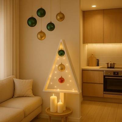 - Árboles delgados o colgantes: Perfectos para apartamentos o estudios, ya que ocupan poco espacio y mantienen el espíritu navideño.